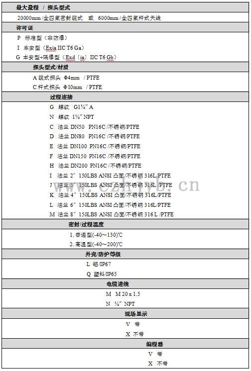 本產(chǎn)品的防爆形式為本質(zhì)安全型。防爆標(biāo)志:Exia IIC T6。本安型導(dǎo)波雷達(dá)物位計(jì)采用壓鑄鋁外殼材料,電子部件采用膠封 結(jié)構(gòu),從而確保電路部分故障時(shí)產(chǎn)生的火花不會(huì)泄放出來。本產(chǎn)品適用于Exia IIC T6 防爆等級(jí)以下可燃性介質(zhì)的物位連續(xù)測量。