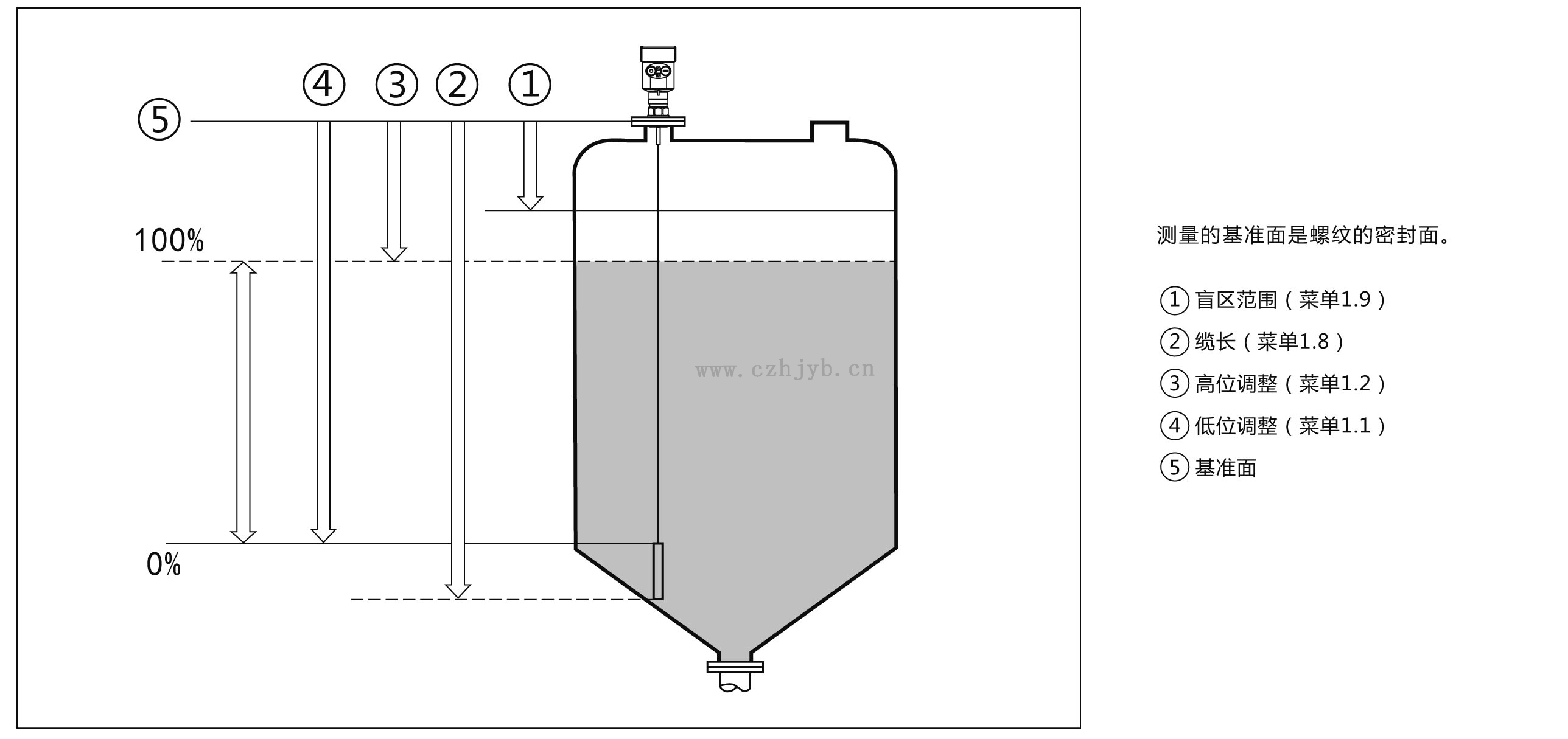 只有物料處于頂部盲區(qū)和底部盲區(qū)之間時(shí),才能保證罐內(nèi)物位的可靠測(cè)量。