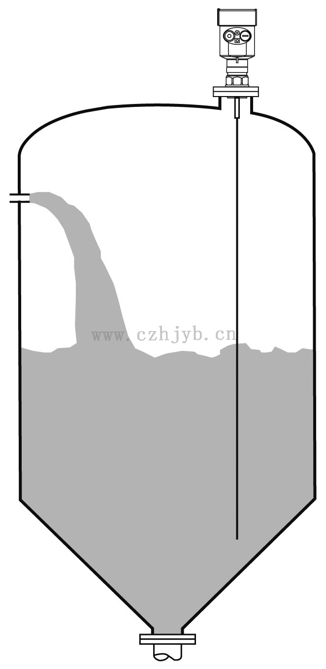在整個(gè)量程范圍內(nèi)確定纜或棒不要接觸到內(nèi)部障礙物,因此安裝時(shí)應(yīng)盡可能避開罐內(nèi)設(shè)施,如:人梯、限位開關(guān)、加熱設(shè)備、支架等。另外需注意纜或棒不得與加料料流相交。