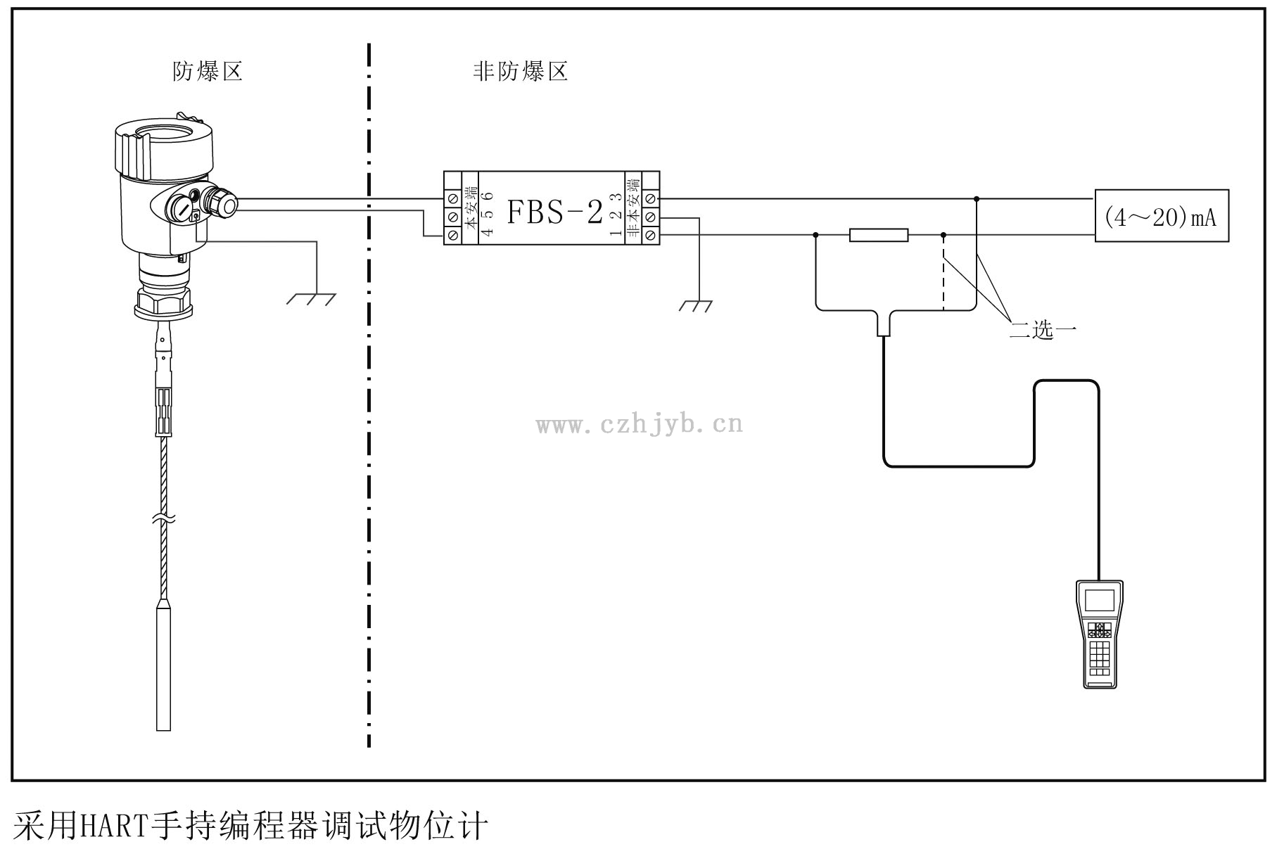 本產(chǎn)品使用時(shí)須用安全柵供電。FBS-2安全柵系本產(chǎn)品的關(guān)聯(lián)設(shè)備,防爆形式為本質(zhì)安全型。防爆標(biāo)志:[Exia] IIC ,供電電壓(21.6~26.4)V DC,短路電流為135mA,工作電流(4~20)mA。