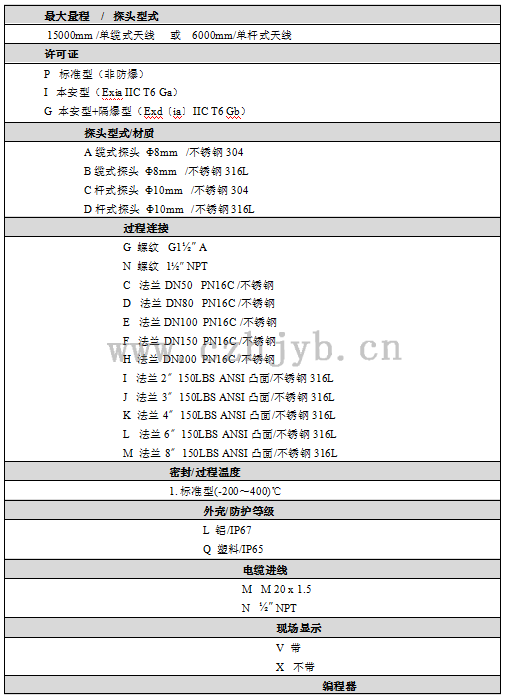 本產(chǎn)品的防爆形式為本質(zhì)安全型。防爆標(biāo)志:Exia IIC T6。本安型導(dǎo)波雷達(dá)物位計(jì)采用壓鑄鋁外殼材料,電子部件采用膠封 結(jié)構(gòu),從而確保電路部分故障時(shí)產(chǎn)生的火花不會(huì)泄放出來。本產(chǎn)品適用于Exia IIC T6 防爆等級(jí)以下可燃性介質(zhì)的物位連續(xù)測(cè)量。